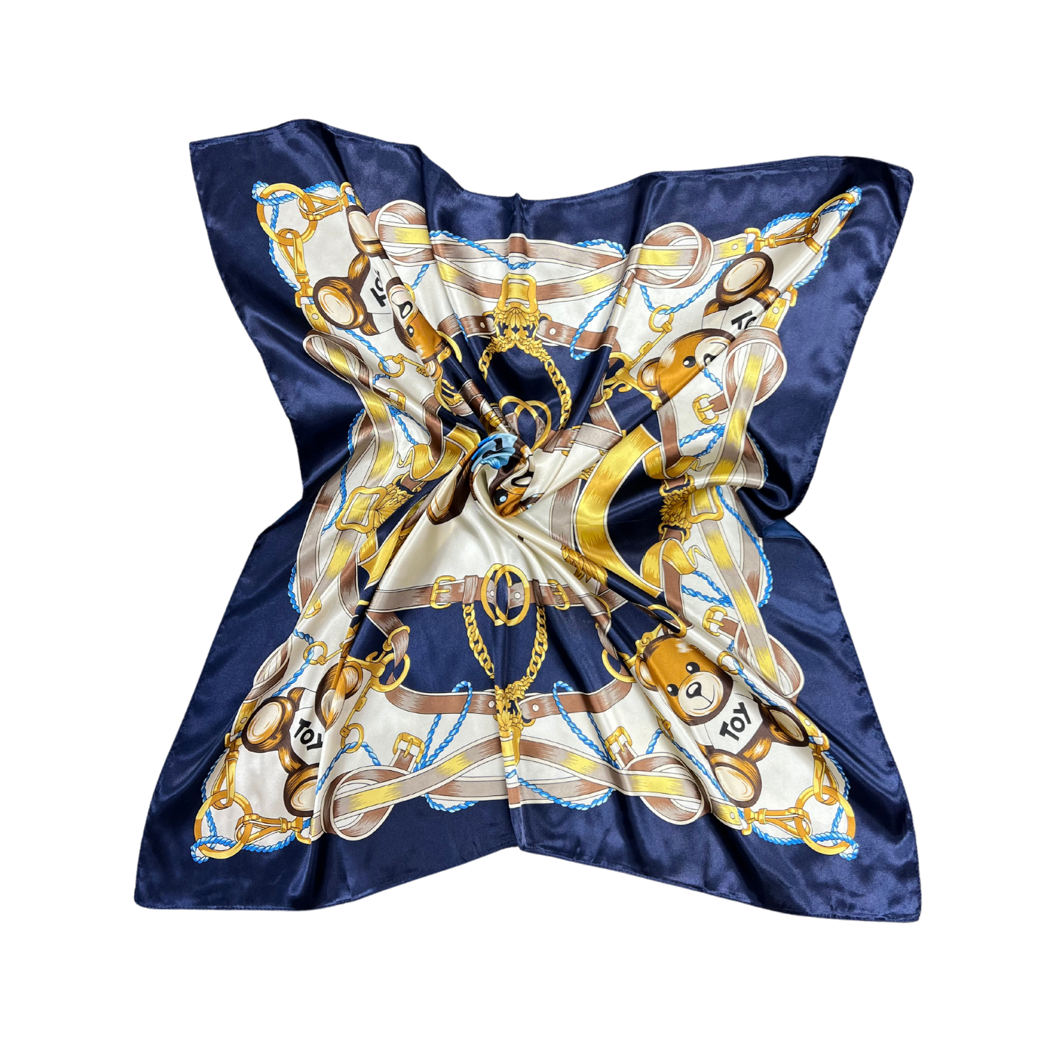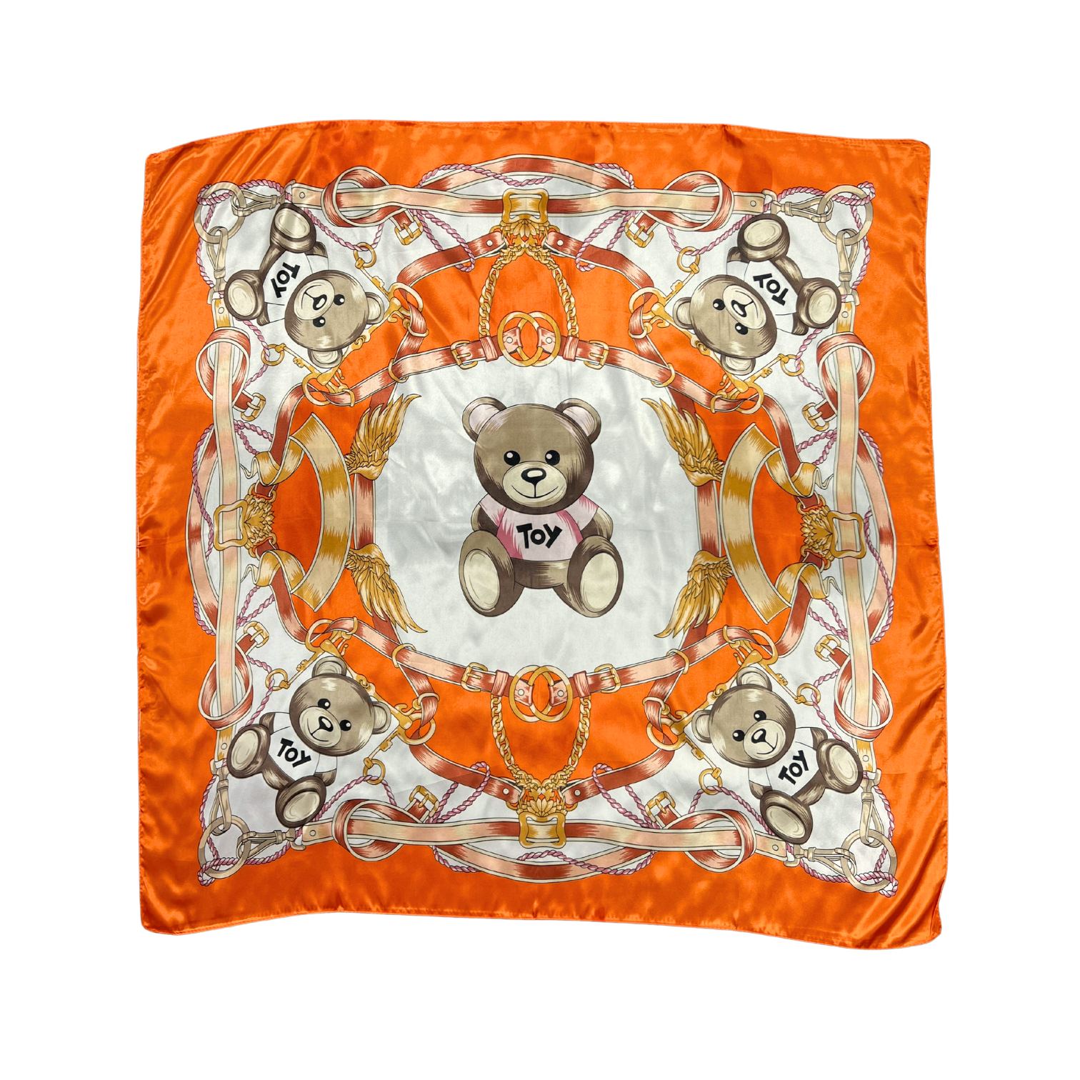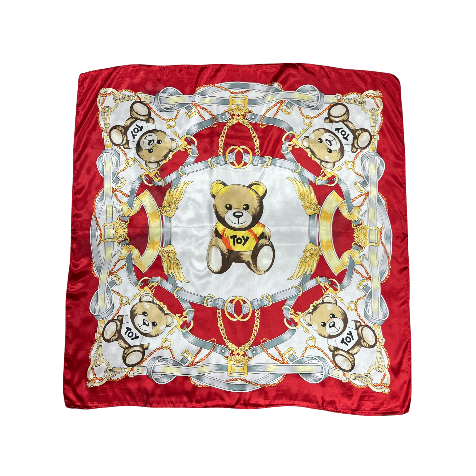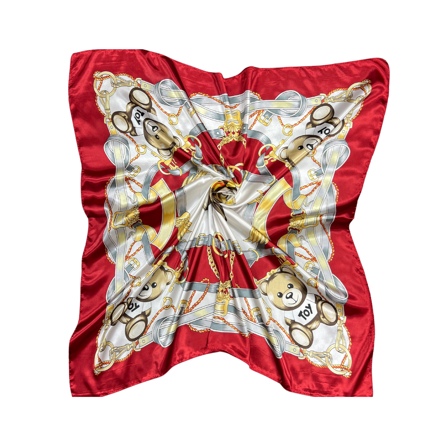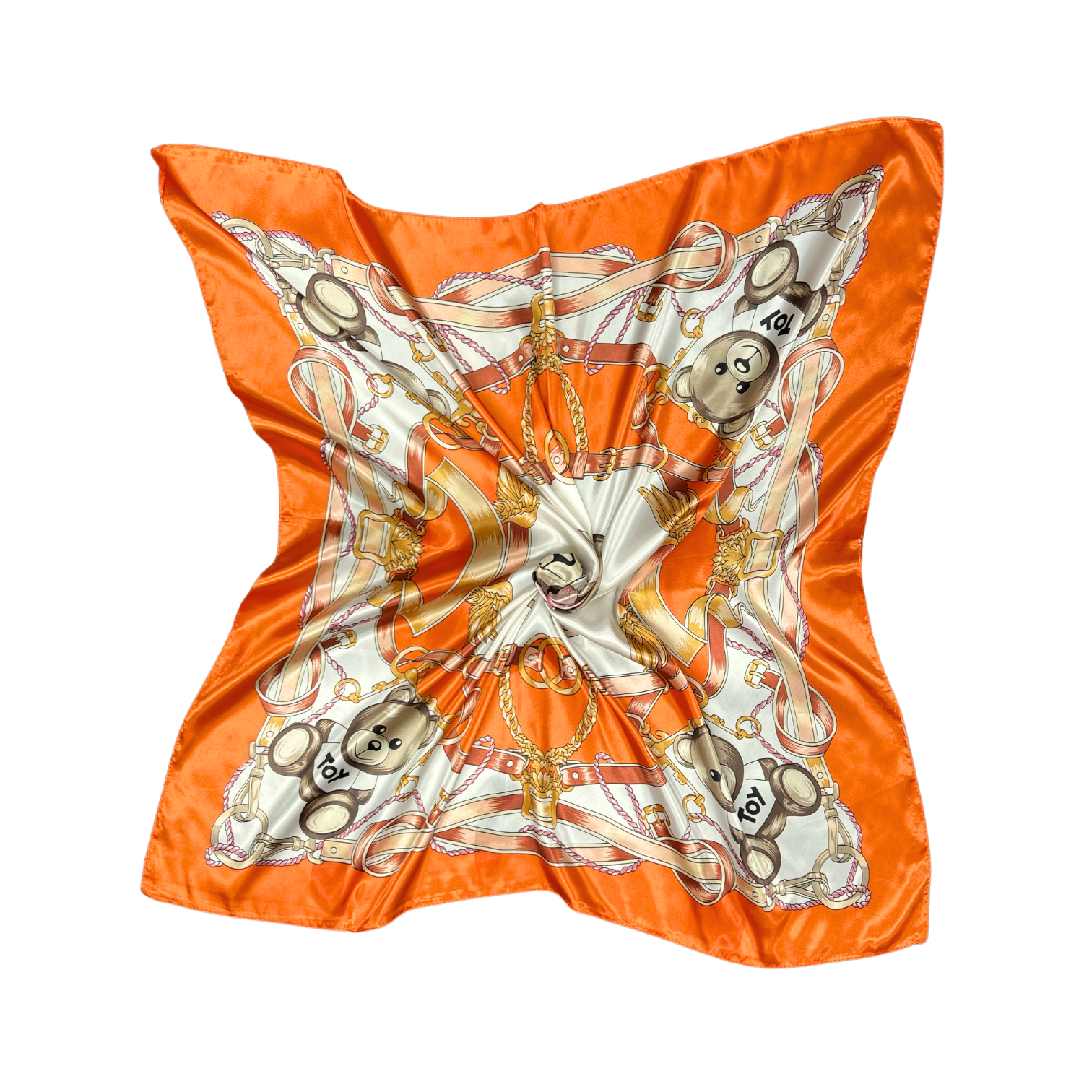 Beautiful silk touch satin square scarf with bear print. The scarf can be worn around the neck, head, and shoulder.
