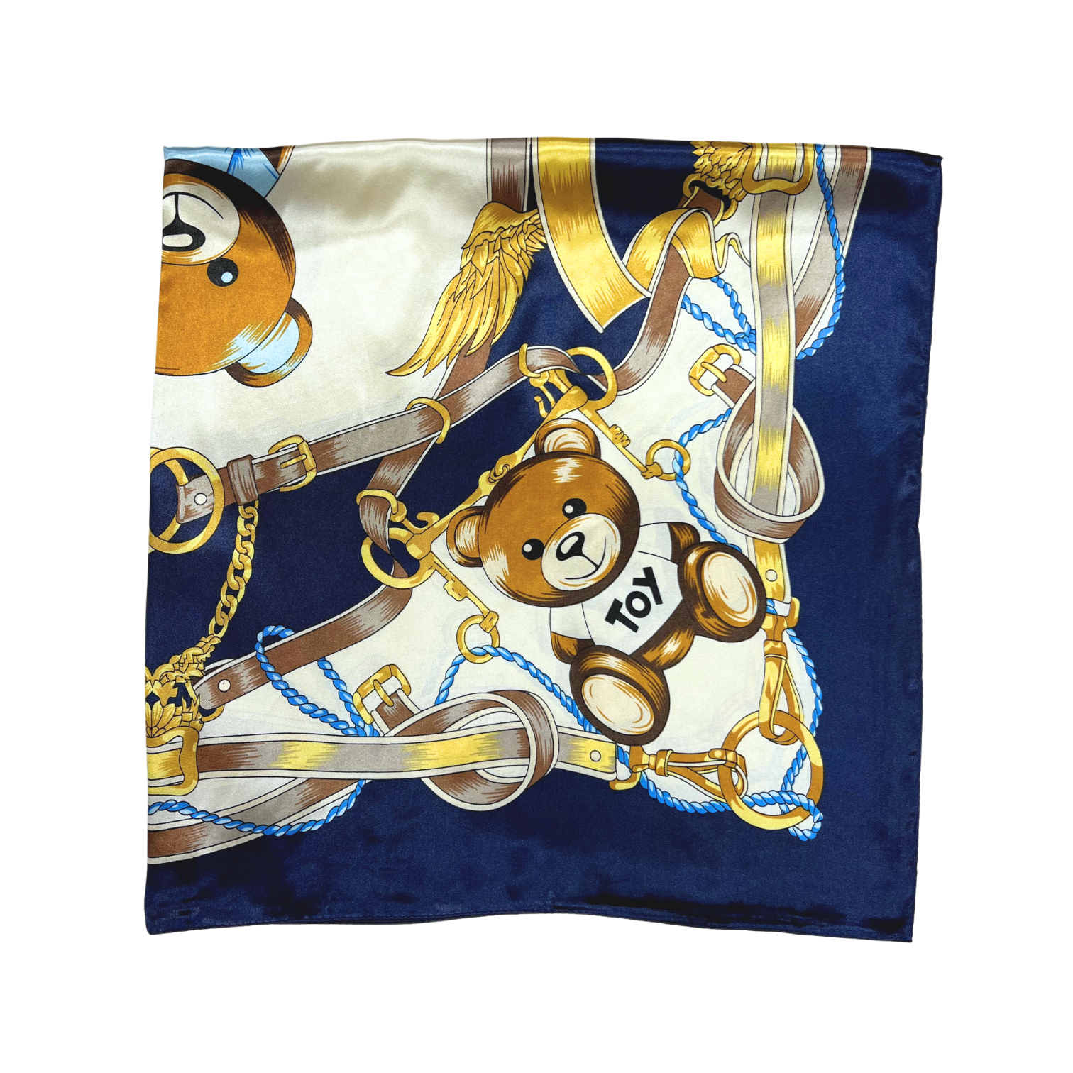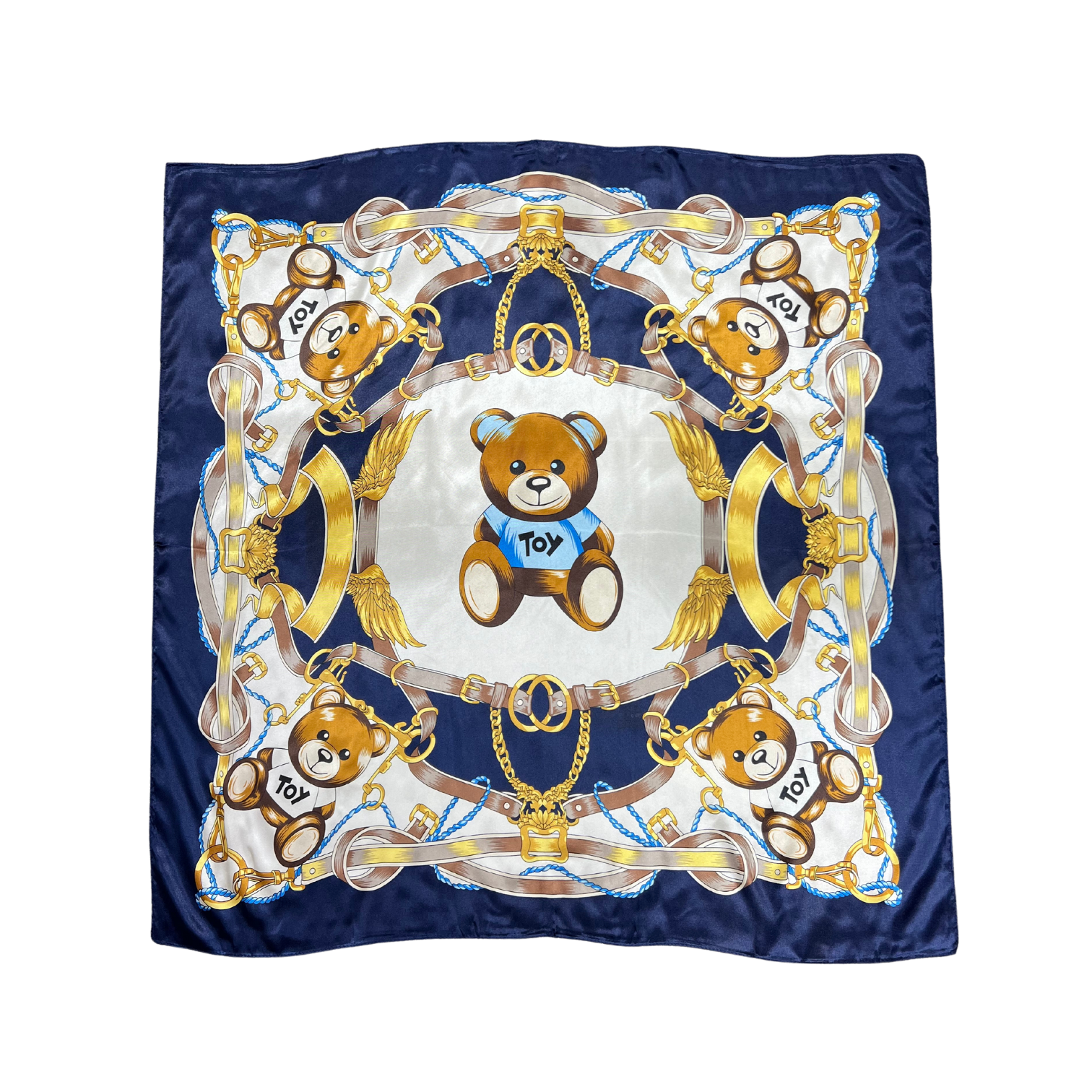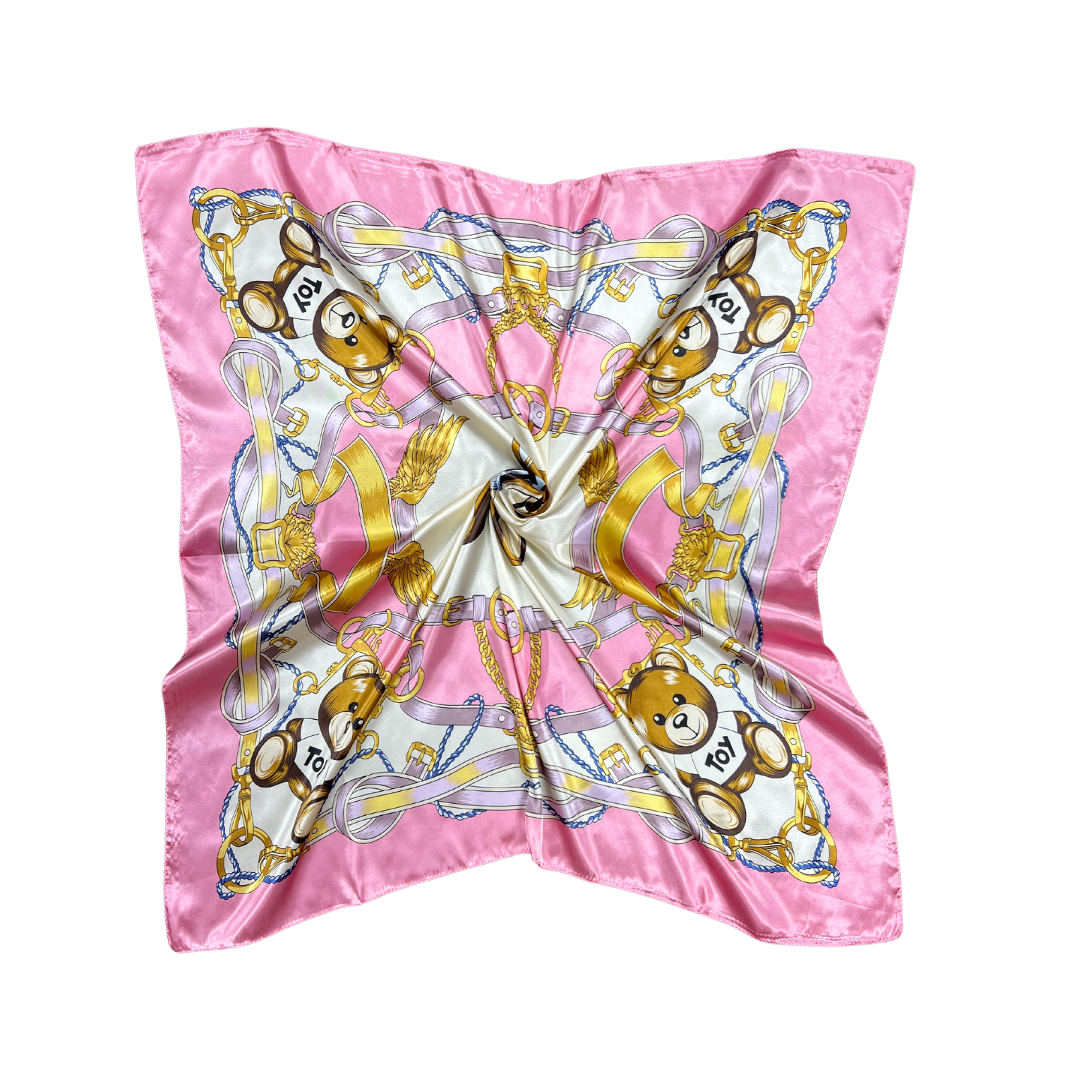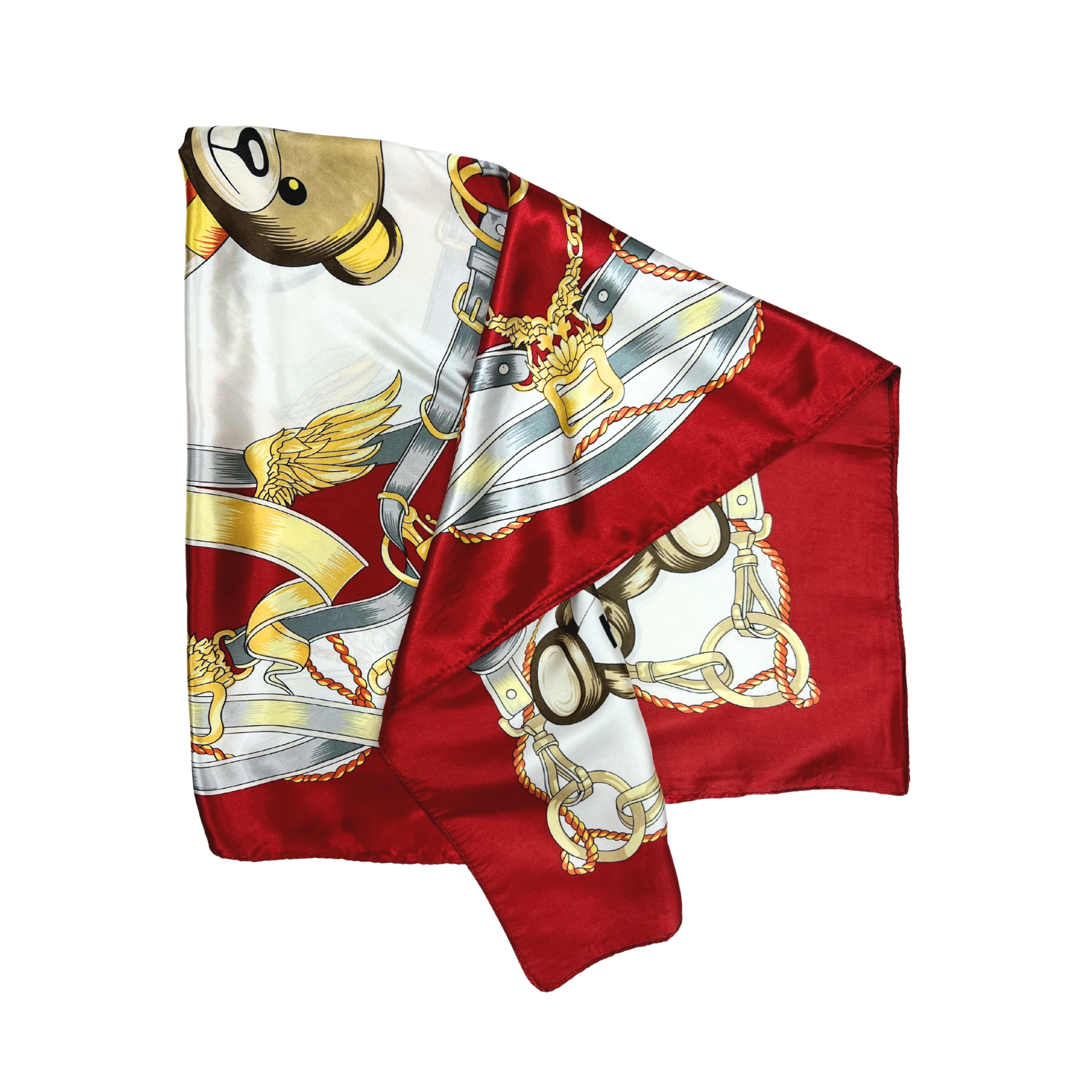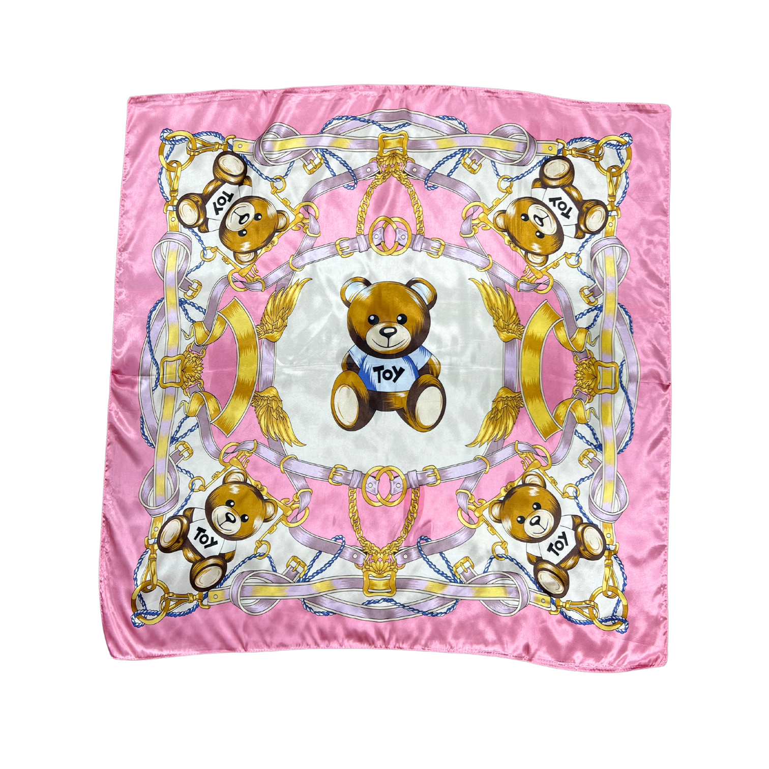 Beautiful silk touch satin square scarf with bear print. The scarf can be worn around the neck, head, and shoulder.