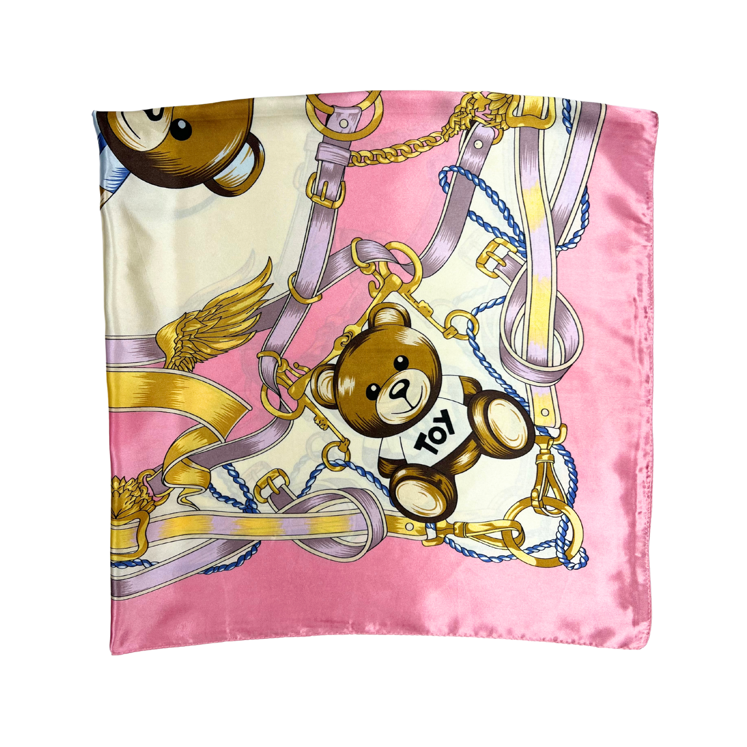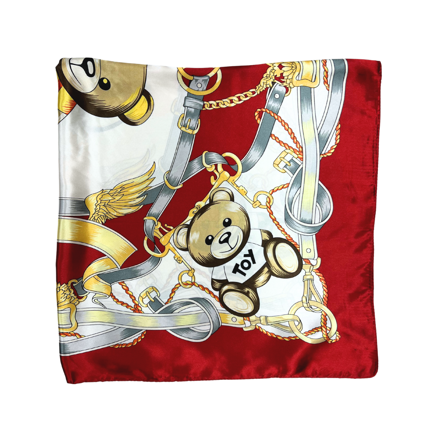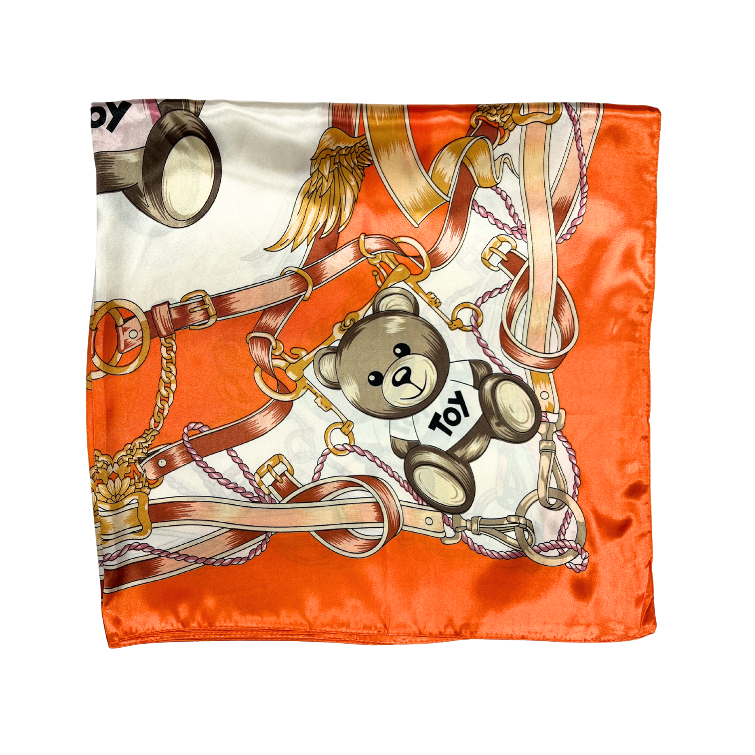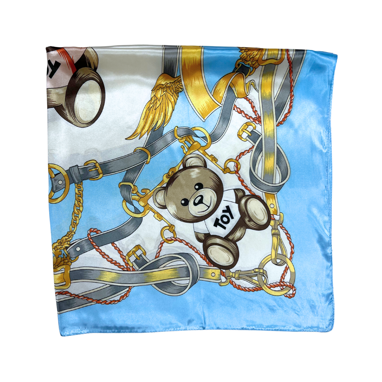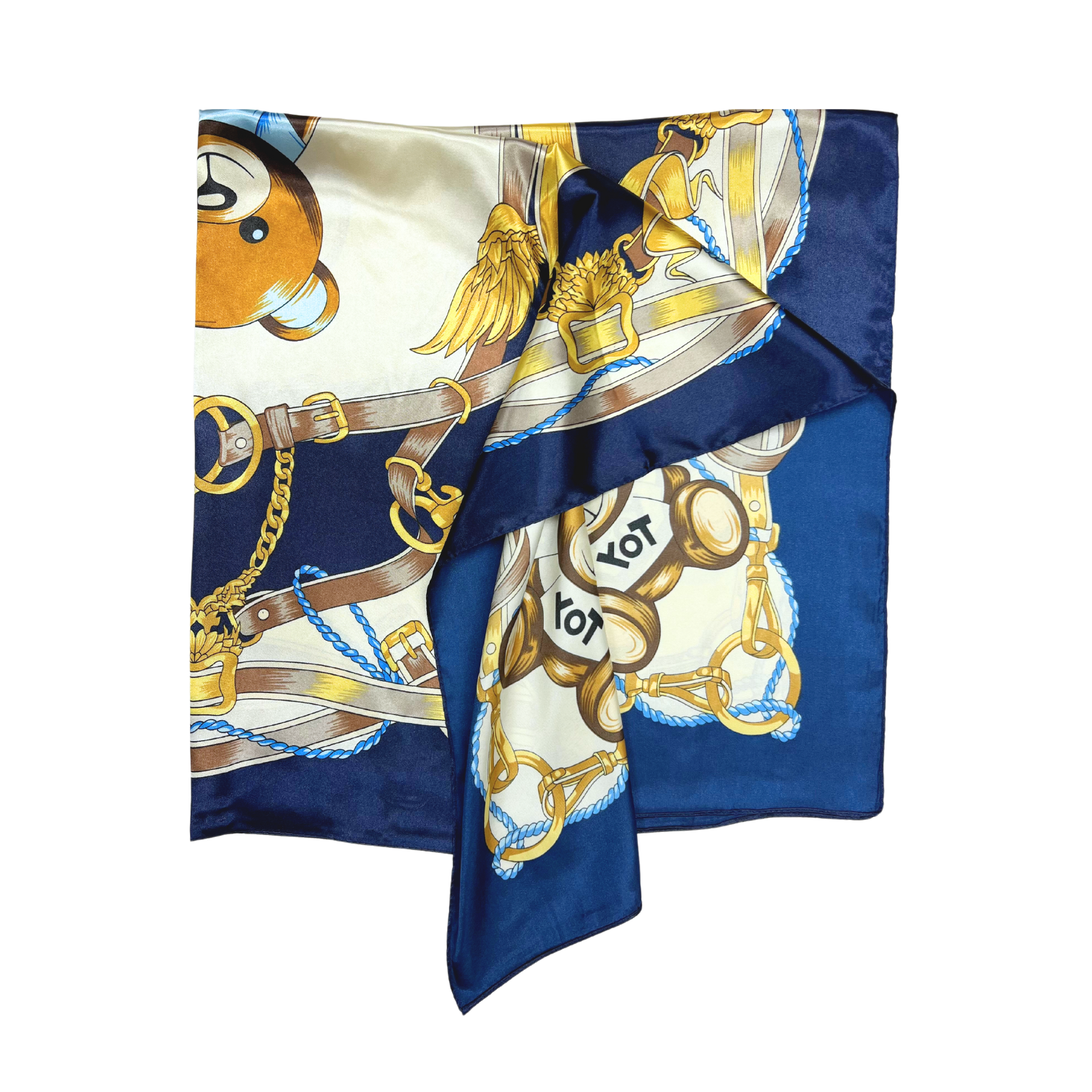 Beautiful silk touch satin square scarf with bear print. The scarf can be worn around the neck, head, and shoulder.