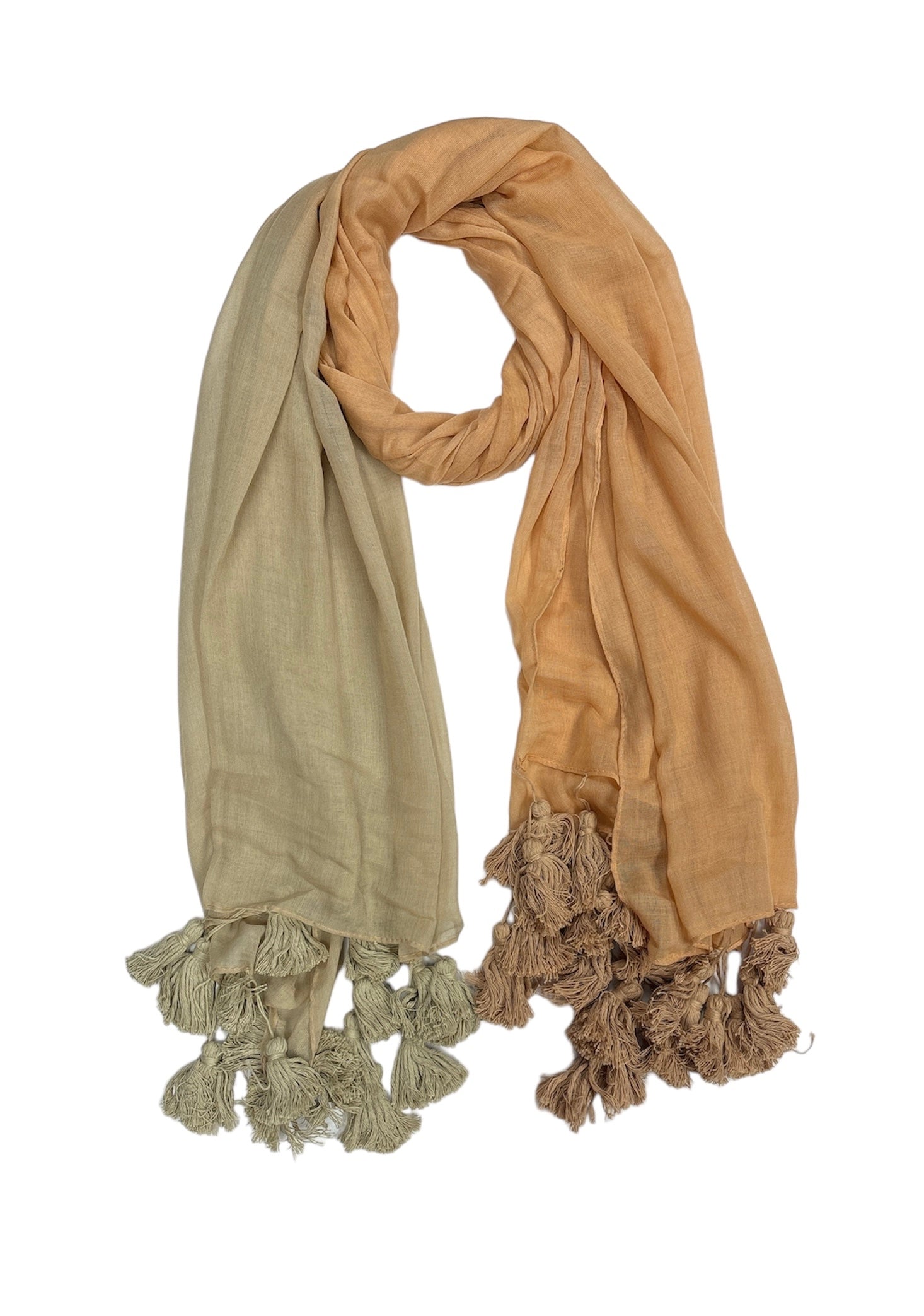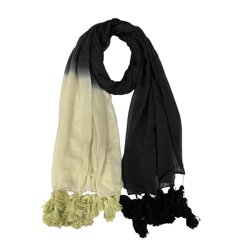High quality large plain scarf finished with tassels , two tone ombre colour, hand dye.